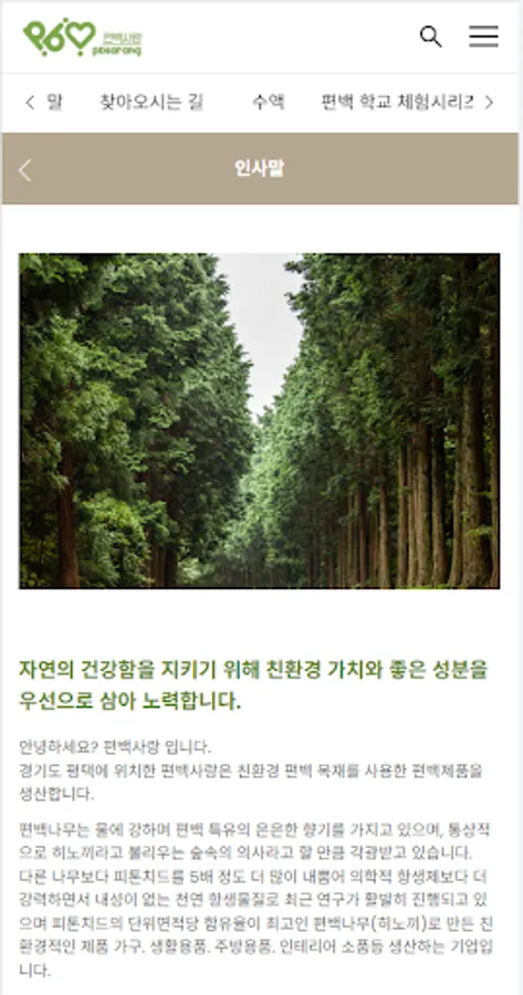 Cypress Sarang, located in Pyeongtaek, Gyeonggi-do, produces cypress products using eco-friendly cypress wood.