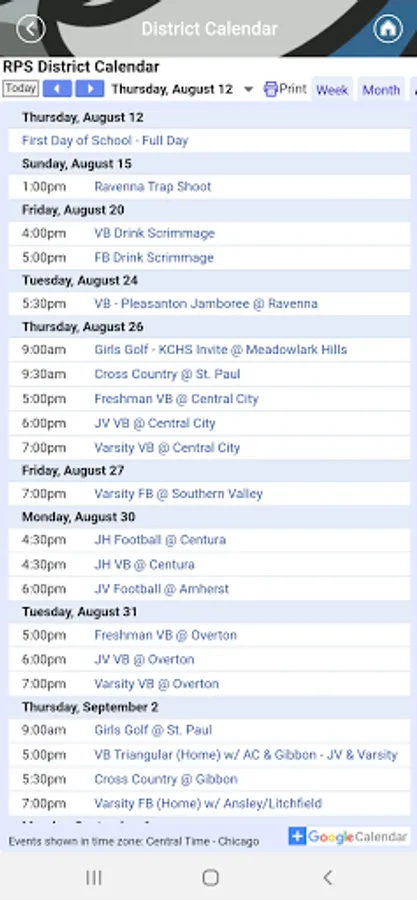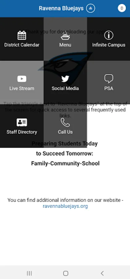 This school app contains the district calendar menu, social media sites, and links to other often used applications and sites within the Ravenna school district.