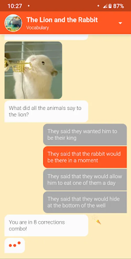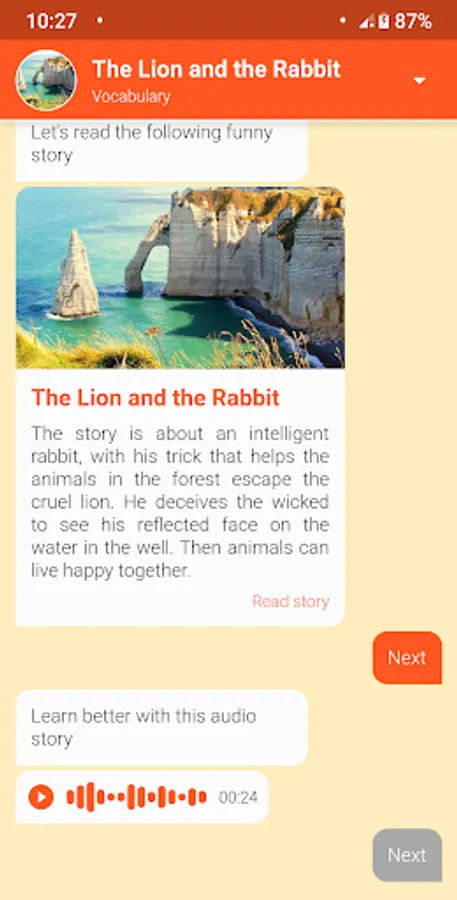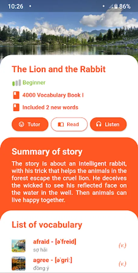 4000 essential English words is interleaved in so many concise stories (20 words / story), besides Tutor Mode with smooth syllabus. In this mode, users can interact with bot and engage in these story, through it users could manage to understand each vocabulary, when to use it, how to use it, ...