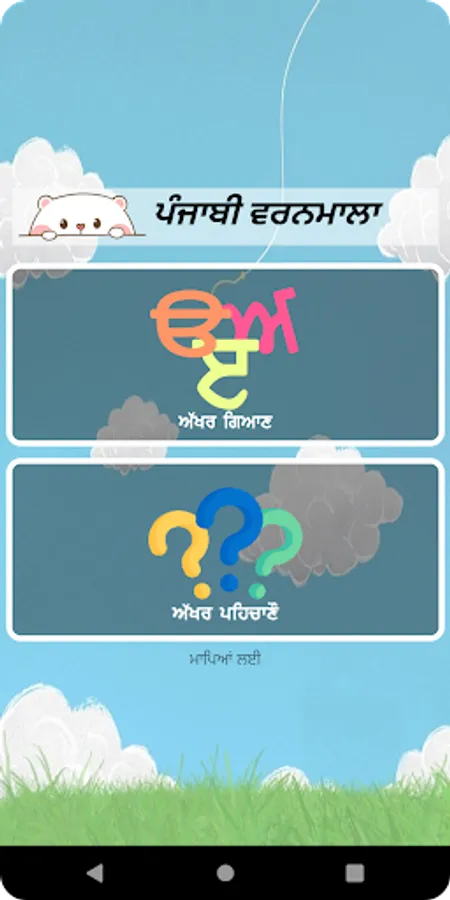 uda ada idi app can be used to learn uda ada punjabi easily as it introduce Punjabi alphabets one by one with the correct pronunciation. It follows hand holding strategy to introduce the basics of Punjabi Varnmala to the app user. So explore the Punjabi Varnmala game to test your knowledge of uda ada idi in fun way.