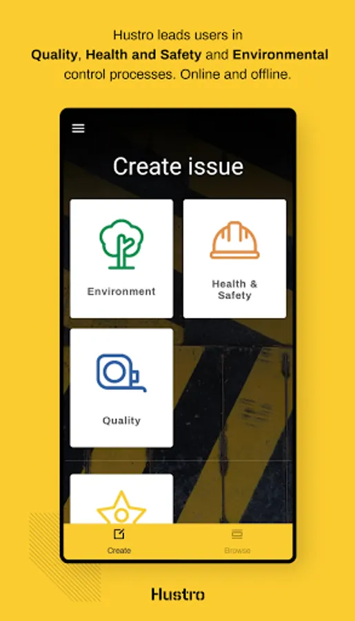 The application works offline, supports inspections and corrective actions in quality control, health and safety control, and environmental control.