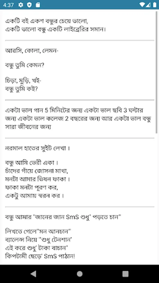 আমাদের এই অ্যাপসটিতে আপনি সকল বিষয়ে এসএমএস পাবেন। পাশাপাশি আপনি কপি করতে পারবেন। এবং এই অ্যাপসটিতে প্রতিনিয়ত আপনি নতুন নতুন কালেকশন পাবেন।