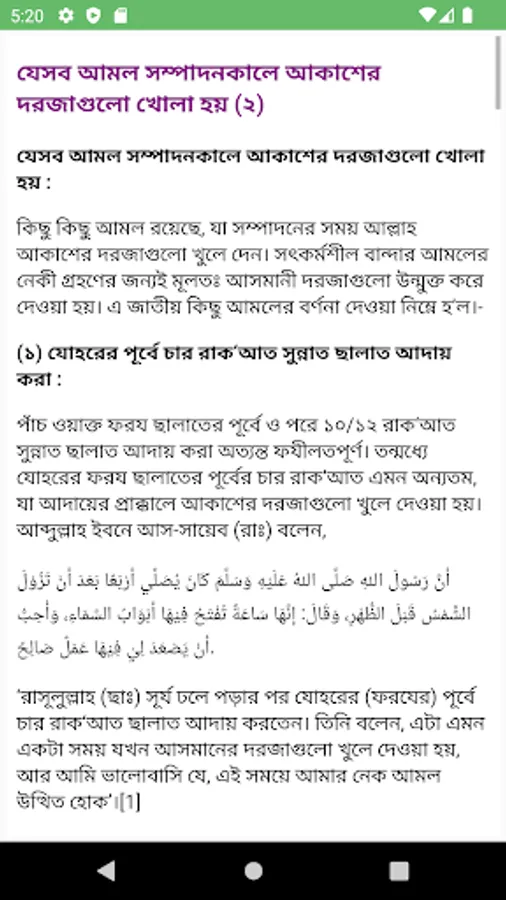 এই অ্যাপের সাহায্যে আমরা জানতে পারব কোন সময় কি দুয়া পড়তে হয় এবং তা কিভাবে আমল করতে হয়। কোরআনের সর্বশ্রেষ্ঠ দোয়া সমূহ সহিহ ও শুদ্ধরূপে এই অ্যাপটিতে লিপিবদ্ধ করা হয়েছে। এই অ্যাপটিতে কোন সময় কোন দুআ পড়লে কি হয় তার সঠিক নির্দেশনা দেয়া হয়েছে।