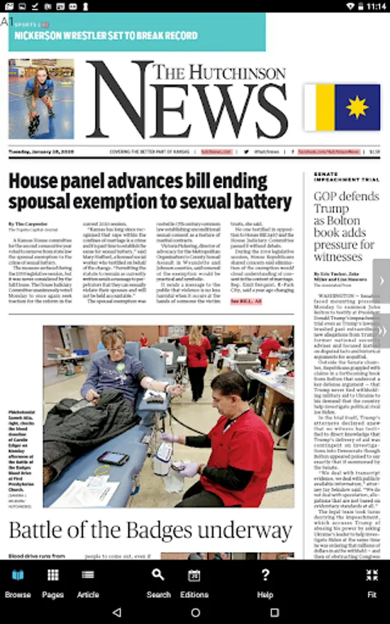The Hutchinson News eNewspaper is an exact digital replica of the printed newspaper. Readers of the paper can flip through the pages, read stories, photos, and view ads just they appeared in print.