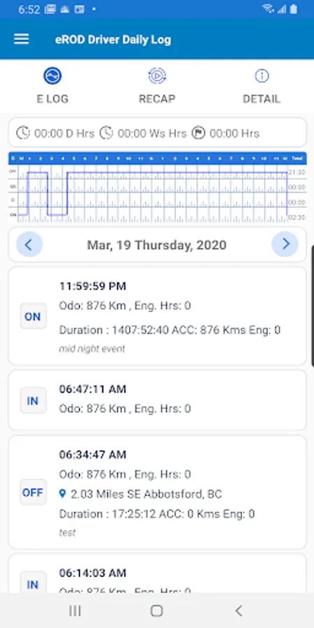 Drivers have the ability to to view their recap of their Hours of Service records for the cycle they have selected.