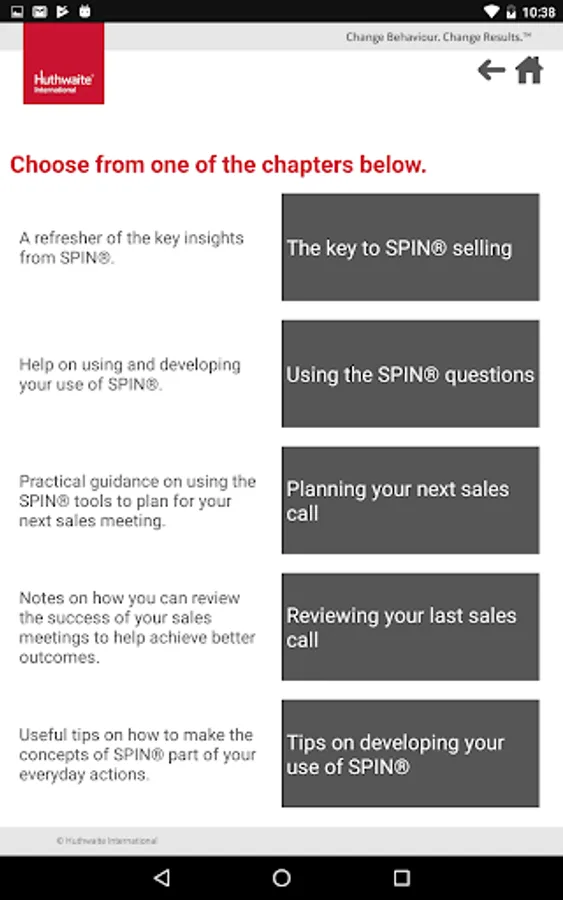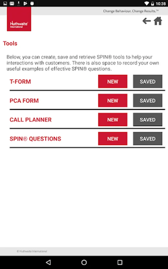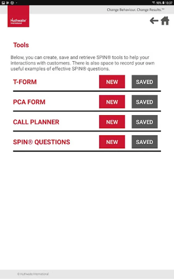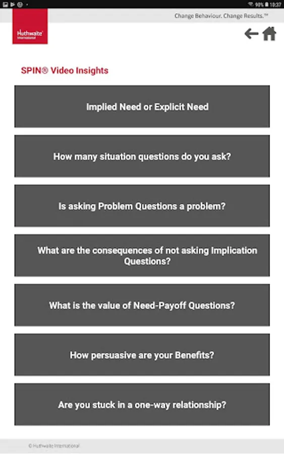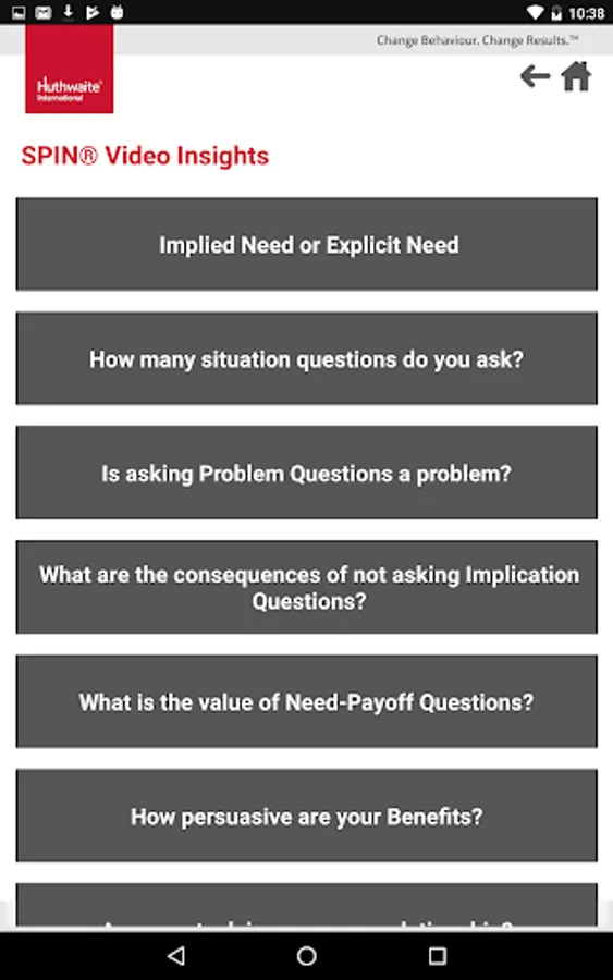 The Huthwaite SPIN® App for iPad and Android tablets exclusively available for individuals trained in SPIN® Selling Skills by Huthwaite International.