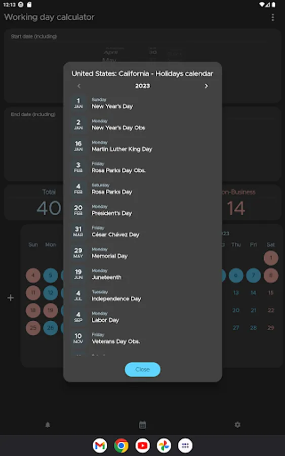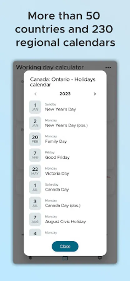 Are you looking for a reliable business day calculator? Look no further than our app! Our mobile application is the perfect tool for anyone who needs to accurately calculate the number of working or weekend days in any given date range. With more than 230 regional calendars from over 50 countries, our app will help you stay on top of all regional holidays and save reminders for any date range.