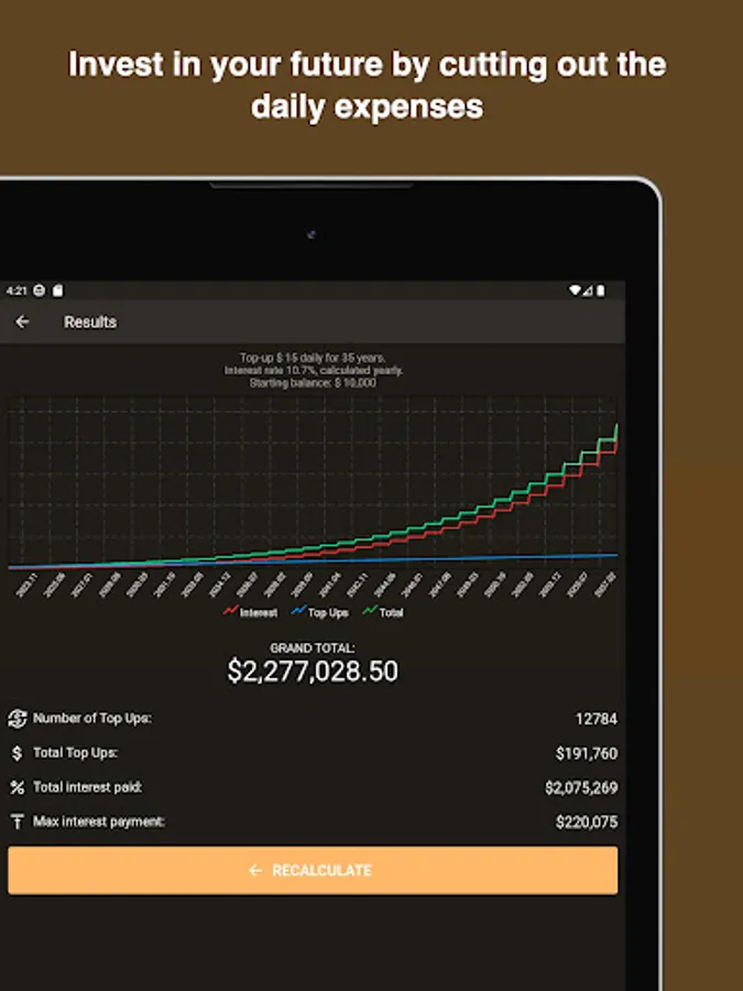 By using our calculator, you can quickly and easily see how small changes to your spending habits can lead to big gains in your investment portfolio. You can make informed decisions about where to cut back and where to put your money to work, allowing you to achieve your financial goals faster.