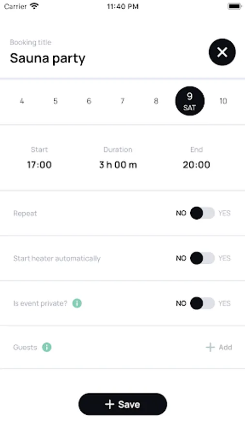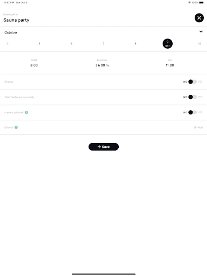 Together with a timed start and calendar style bookings you will never have to wait for your sauna to get hot again. The app will notify you when your sauna is about to reach the target temperature. You can also monitor the sauna temperature from the mobile app.