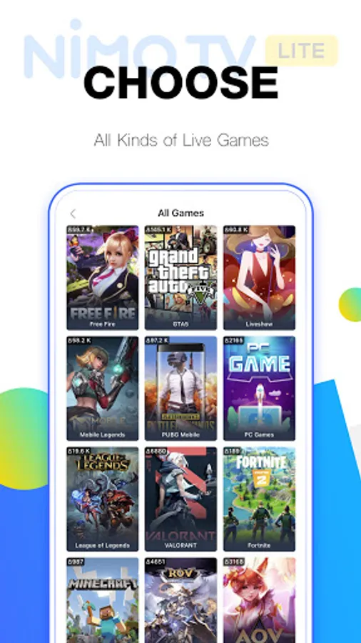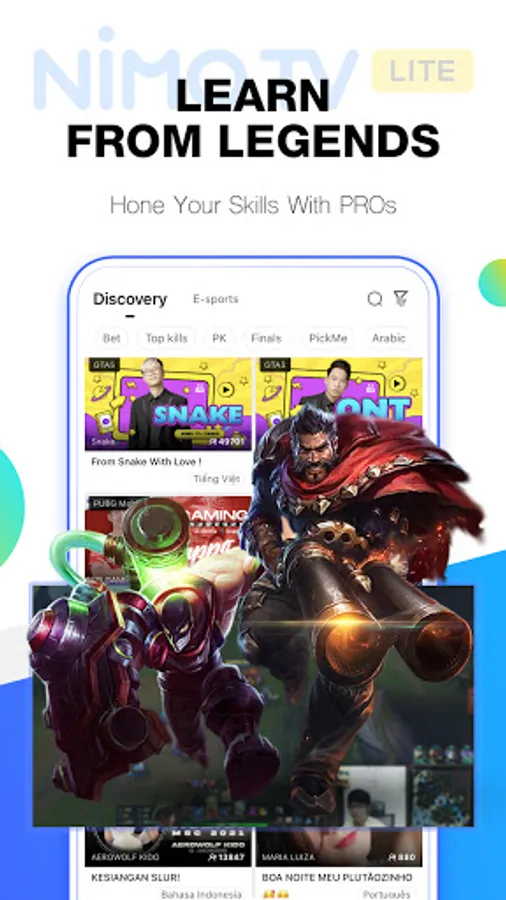 Nimo TV Lite is the small-sized version of Nimo TV. It's smaller in size but all your favorite still available.You can also enjoy a excellent video streaming experience.It is a community of players, gamers, and fans that drive conversation. Utilizing high-quality interactive technology, audiences can interact with streamers, and gain access to exclusive E-Sports events and tournaments, along with unprecedented access to the top streamers from across the region.