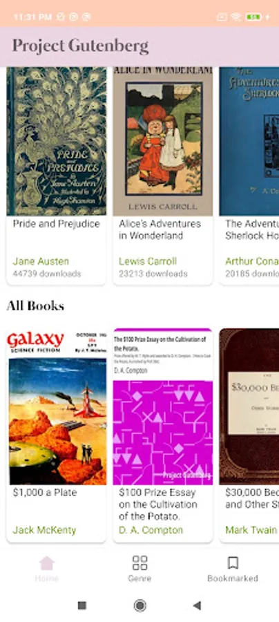 With this app, you will comfortably browse bookshelves, search by title, download and read those books on your phone.