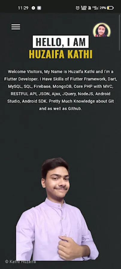This App Content Whole the Information about Huzaifa Kathi, Some People Don't Know who is Huzaifa kathi so all you have to do is Just Search me in Google "Who is Huzaifa Kathi?" and you will find me on Google