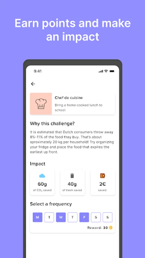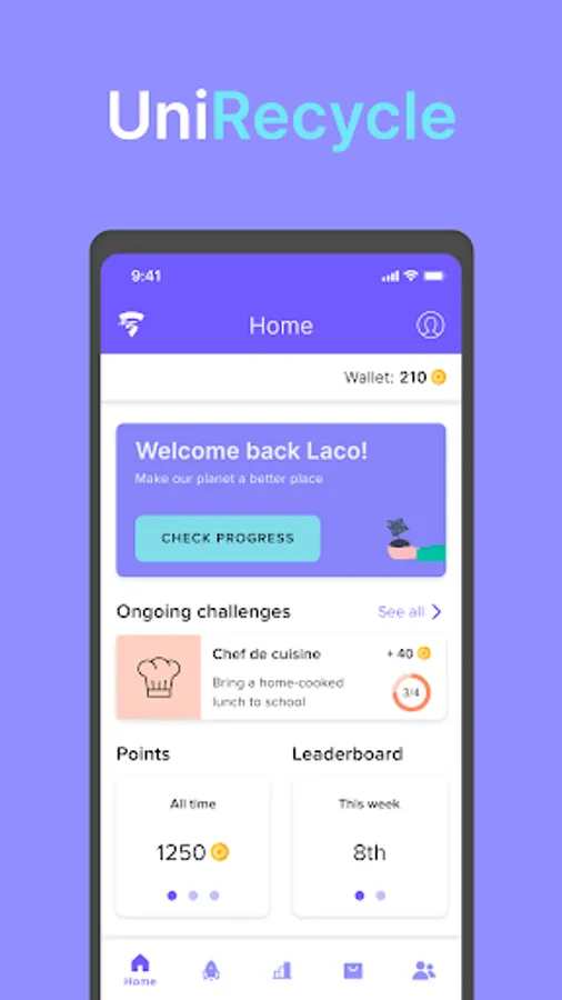 The app is designed to motivate HvA students to make sustainable choices about their waste production and overall environmental impact. It works by providing the user with challenges centered around sustainability - for example, packing lunches in reusable containers, rather than purchasing a packaged lunch. Once challenges are completed, users earn sustainability points that can be traded for rewards (discounts from our sustainable partners). Combined points also contribute to users’ place on the leaderboard, allowing users to compete with other students. The gamification-based system utilizes evidence-based intervention strategies for behavioral change, such as nudges, goal setting, and competition