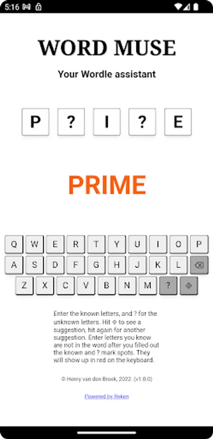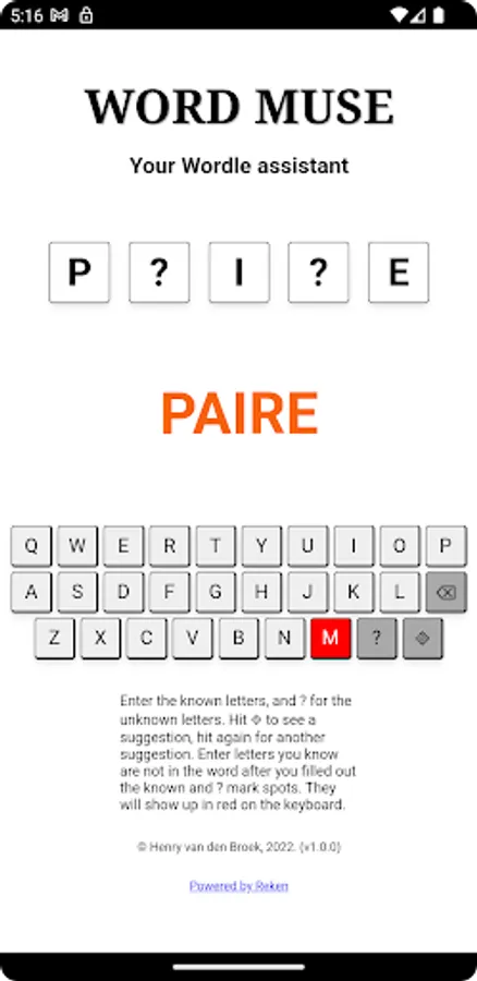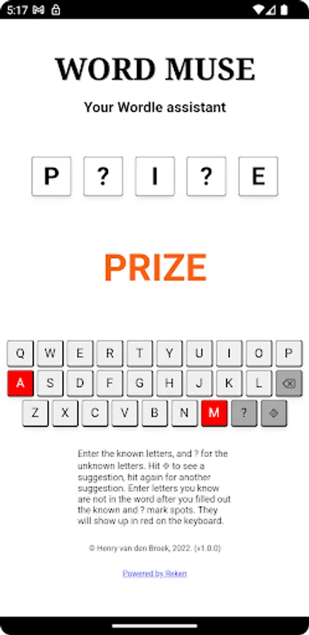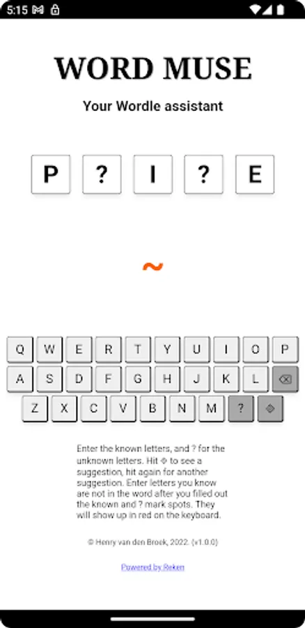 Let Word Muse do the letter crunching for you, as Word Muse will help when you get into that mode, where you start looping through the alphabet to find a word that fits your earlier Wordle attempts.