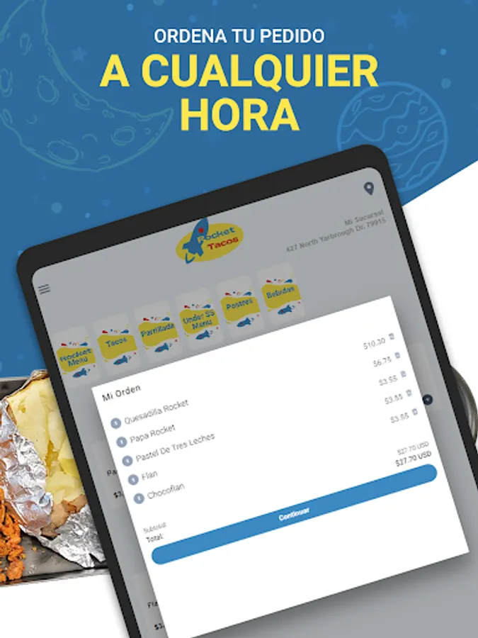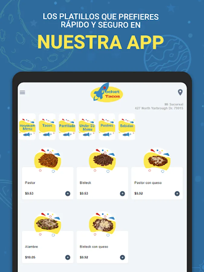 Order your favorite foods from the Rocket Tacos restaurant in our own App.