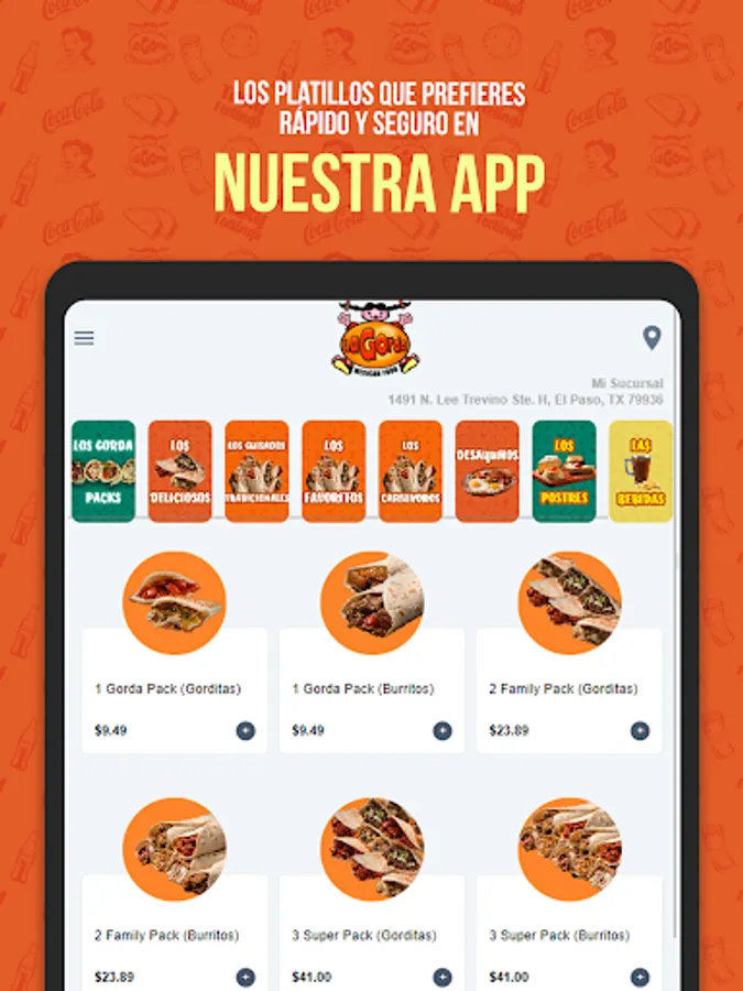 Ordena tus alimentos favoritos del restaurante La Gorda en nuestra propia App.