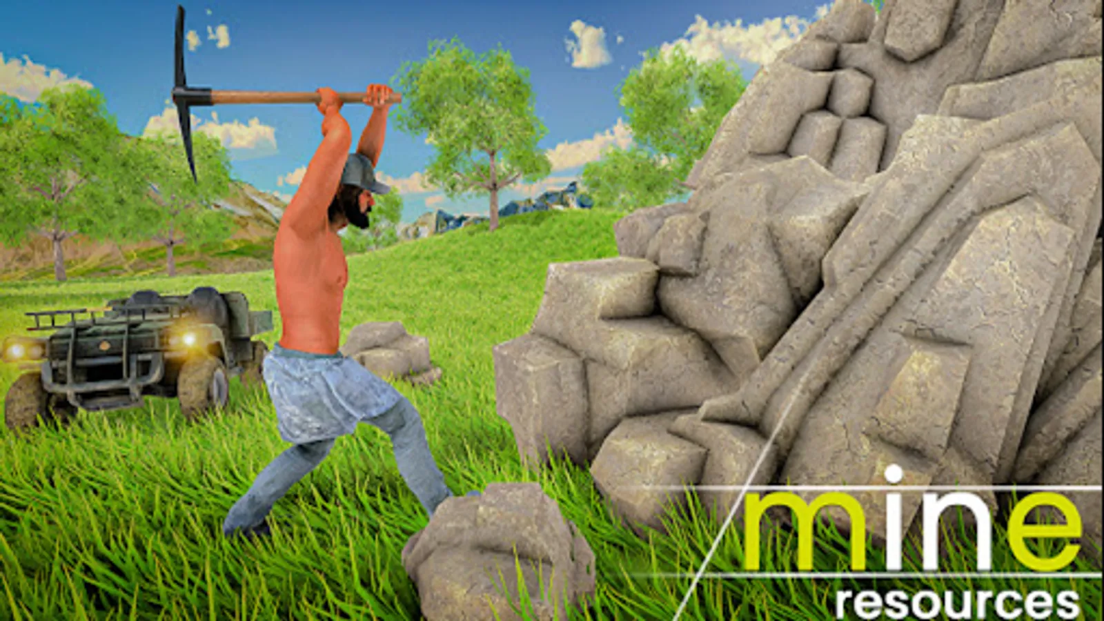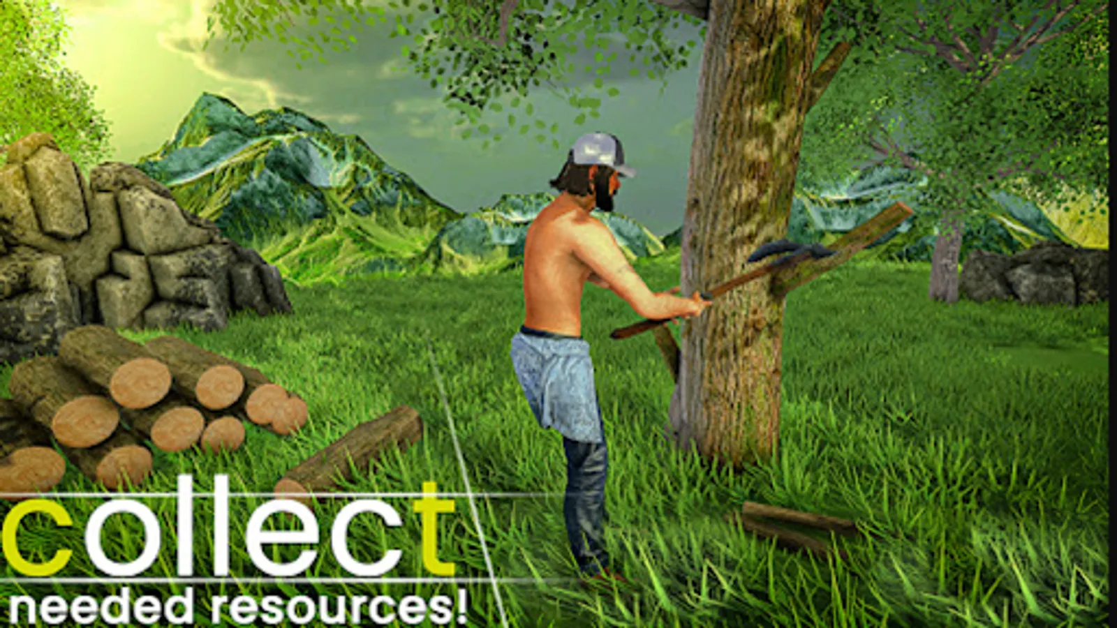 You start off hungry in the raft survival island game, so to survive on island you have to find some apples and coconut on the ground and eat them to regain health. Then Find some resources on ground, pick up leaves, stone and wood in ocean where you did raft survival, before your raft got destroyed. Now use these items (Stone and wood) to build an axe, then go to the bigger stone and use axe to mine some stone in this Raft Survival Game 3D - Island Escape Craft Sim.