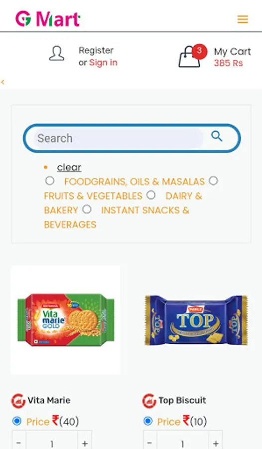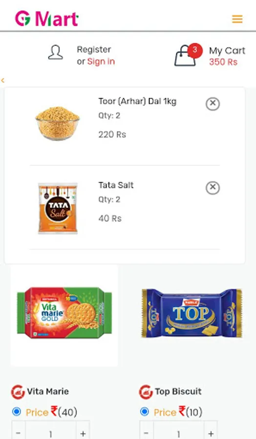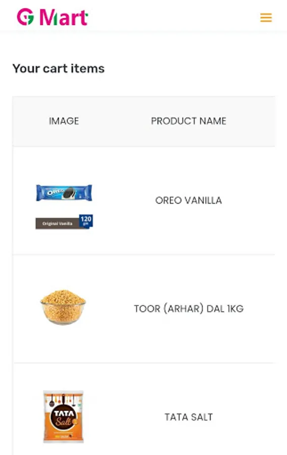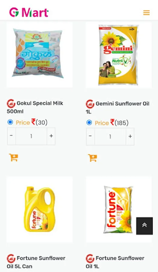 Log in to the Gmart online home delivery app · Add products as per your requirements to your shopping cart · Once you have added all now select .
