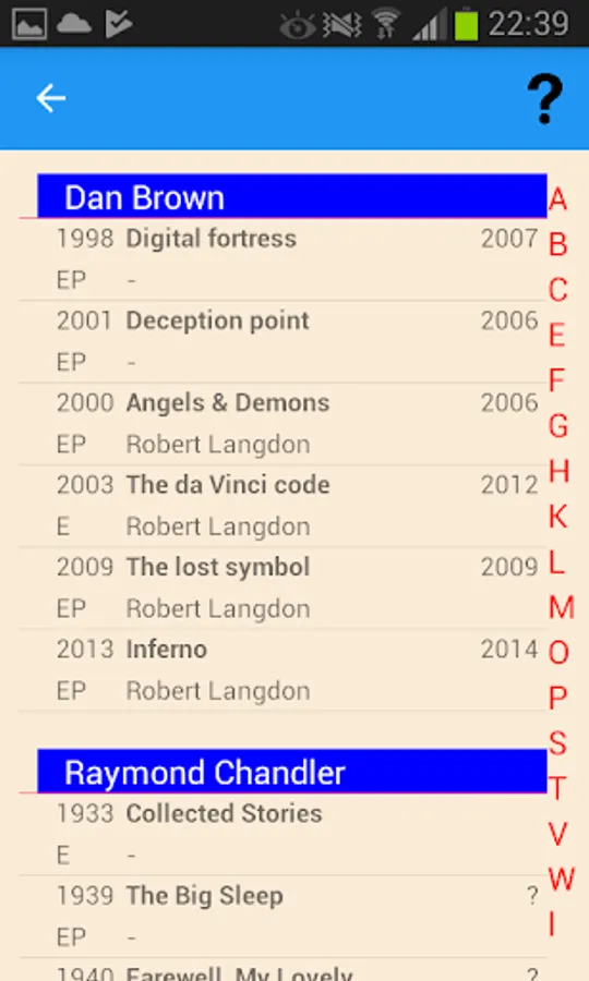Furthermore, you can export and import special designed xml-files with all details of the authors, series and books. You can exchange these xml-files with others, the files can be edited on a PC, for instance to add a long summary, and you can keep your backup in a safe place.