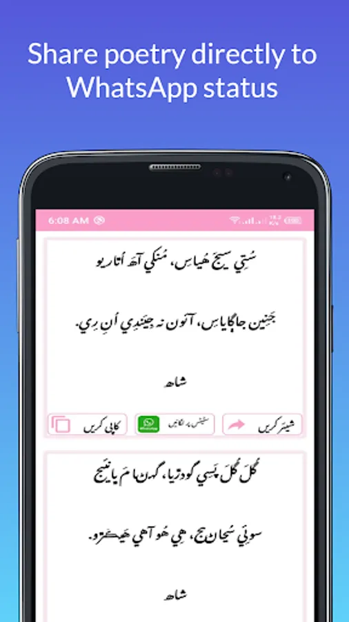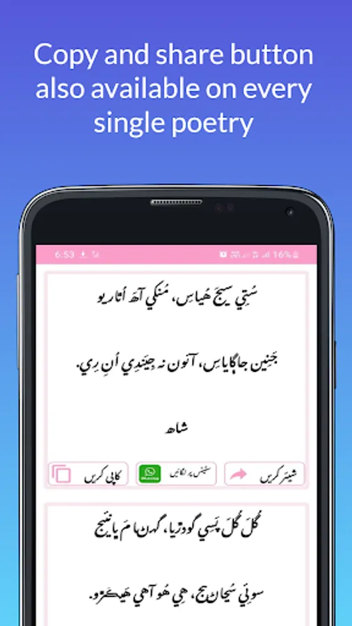 All Sindhi Shayari in Sindhi text is here. You can easily add your own Poetry to This app