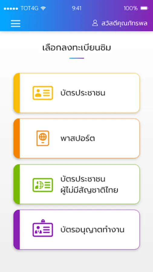 Application for registering telephone numbers of the TOT network to verify identity identity