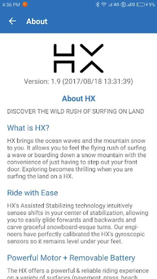 The HX App (Android & IOS) allows you to switch between modes based on your ability. Use the app to regularly update your board’s firmware, check your battery status, and track your speed with the speedometer.