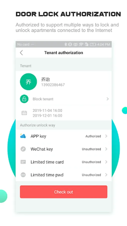 3. Unlock authority: issue authority with one key and authorize unlock in multiple ways;