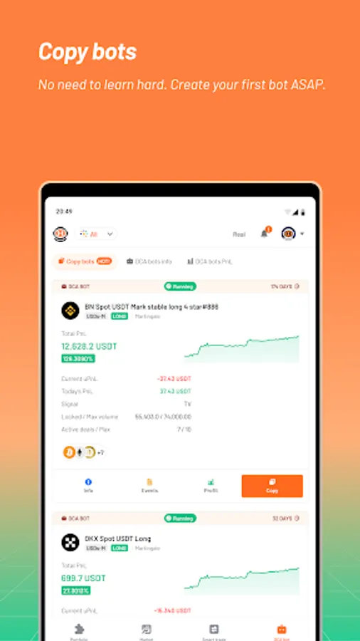 If you find it hard to build your own trading strategies or lack confidence in your strategies while setting up trading bots, you can easily copy the well-performed bots of other advanced traders by HXR Trade Copy Bots function.