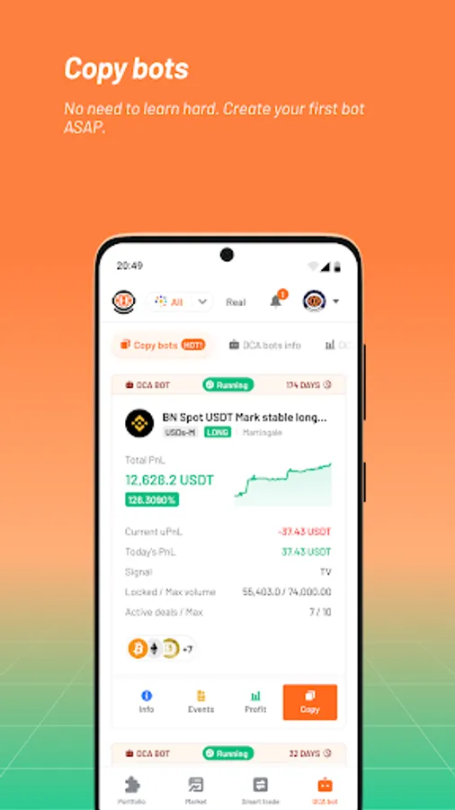 Create great crypto trading bots with TradingView indicators and custom signals. You can use TradingView indicators and custom signals to start, close, and cancel bot trades.