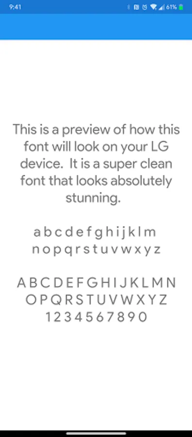 This is G Sans font. This font will only work on LG devices that support custom fonts. Typically people have to only get fonts from the build in smart world. However this is an alternative for those who need more options for clean fonts. To apply go into your Settings app. Next go into display. From there select "Fonts" and then select "G Sans" and apply it! That's it. Simple and easy to use.