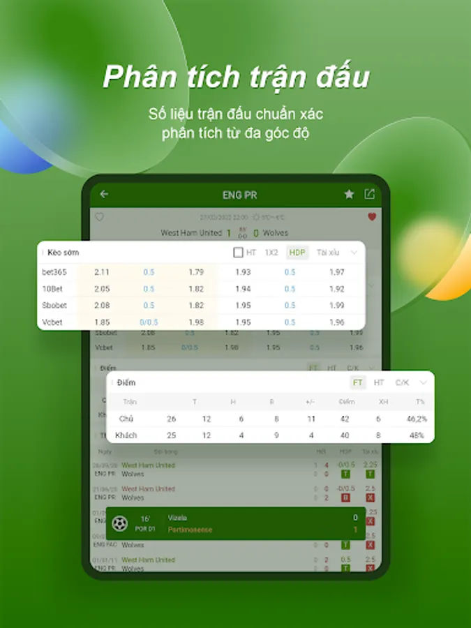 We are a Free application that provides Vietnam's leading live scores, match analysis and football scores.