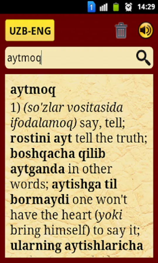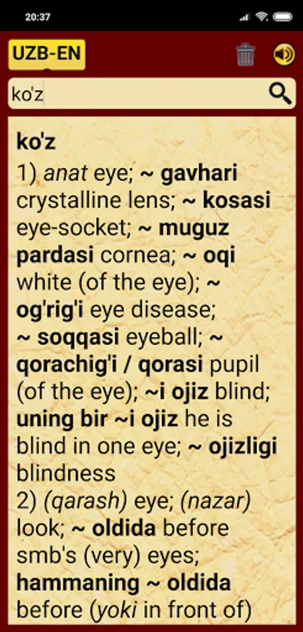 This is the most complete English-Uzbek-English Dictionary at Google Play.