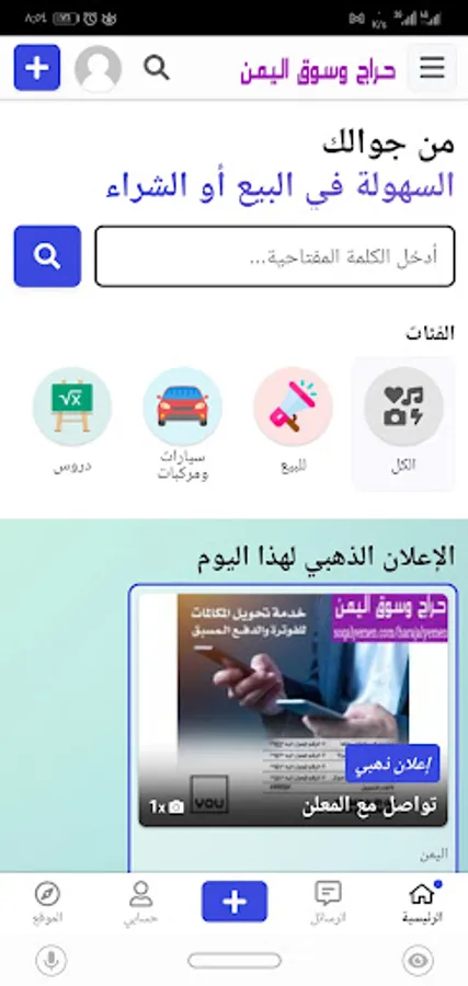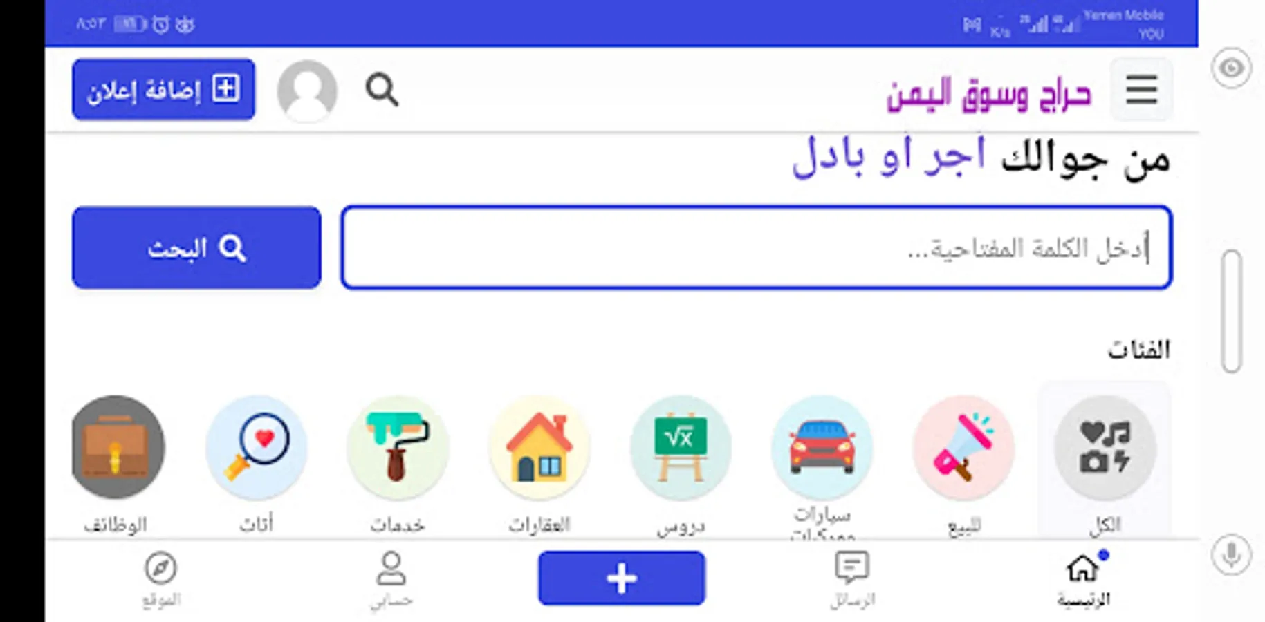 The application in general is a script for classified ads, which is an extension of the Yemen Haraj website, which is a service for all Yemenis inside and outside Yemen. Specialized in classified ads.
