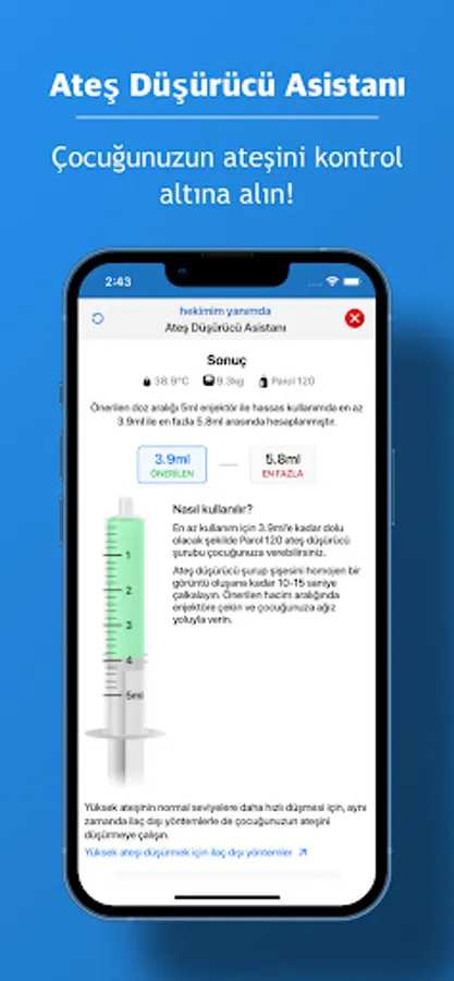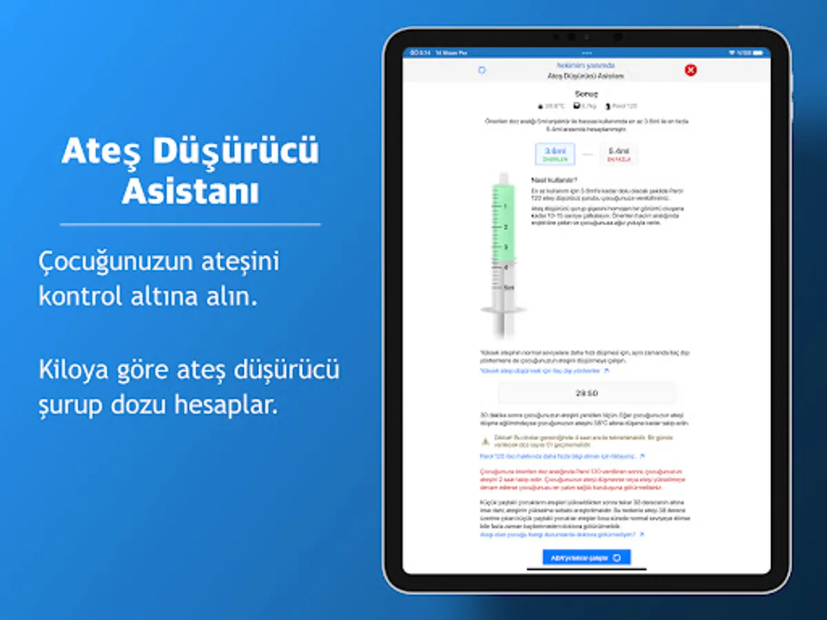 1) Antipyretic Assistant: Keep your child's fever under control. Calculates the dose of antipyretic syrups according to weight. Makes recommendations based on your child's temperature and weight. Calculates paracetamol dose according to weight. Calculates ibuprofen dose based on weight.