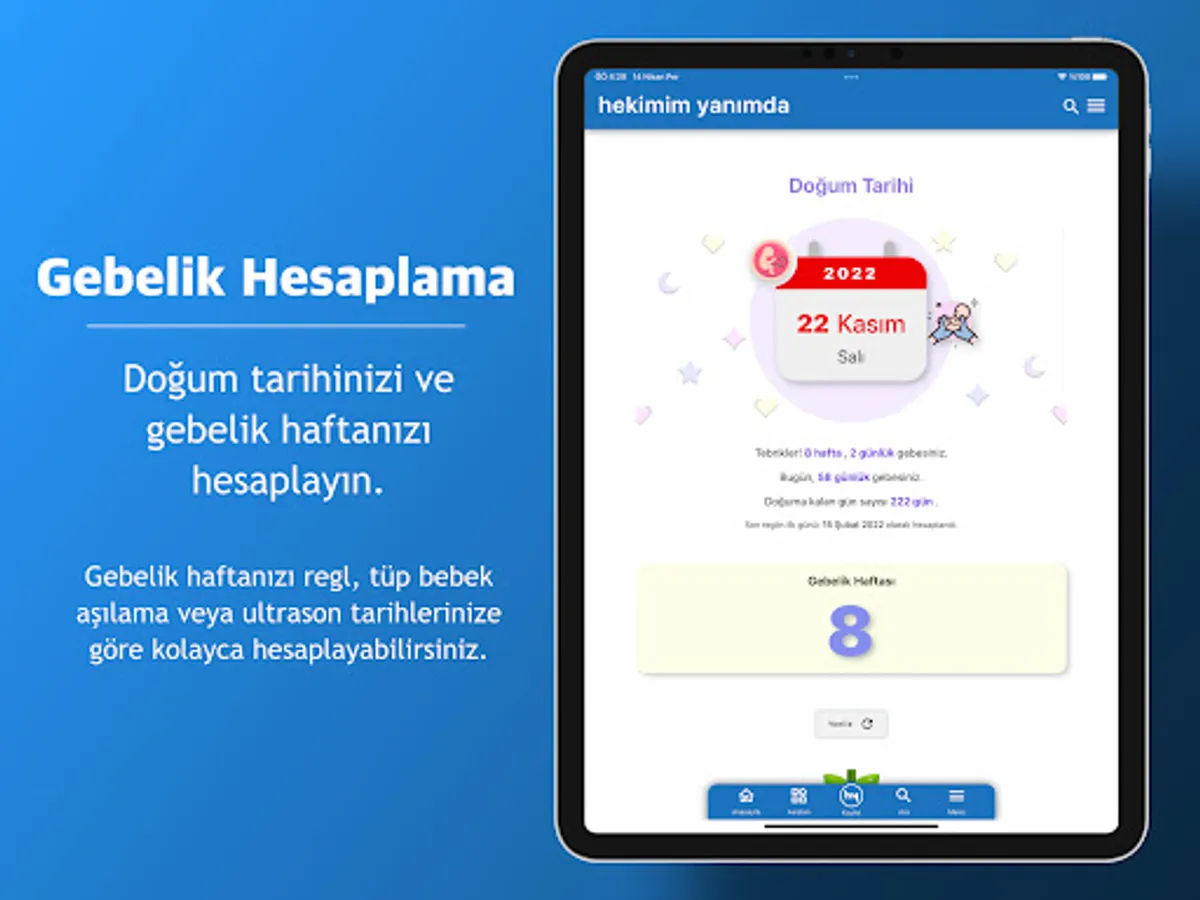 2) Pregnancy Assistant: Having a healthy baby requires healthy pre-pregnancy planning. Learn what to know and what to do before pregnancy begins. Choose your pregnancy week with a specially prepared pregnancy calendar. Get recommendations specific to your week of pregnancy. Plan your pregnancy follow-up.