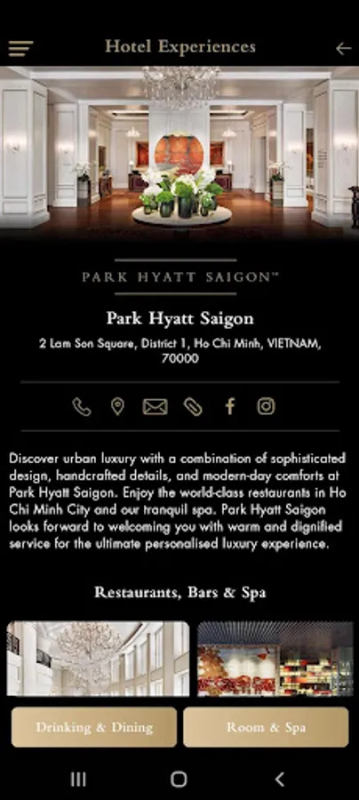Welcome to Dine at The Park - the first-ever loyalty membership programme designed for diners of Park Hyatt Saigon. With a combination of sophisticated design, handcrafted details, and world-class dining, Park Hyatt Saigon takes guests to a new level of urban luxury where personalisation is mastered to offer unmatched experiences.