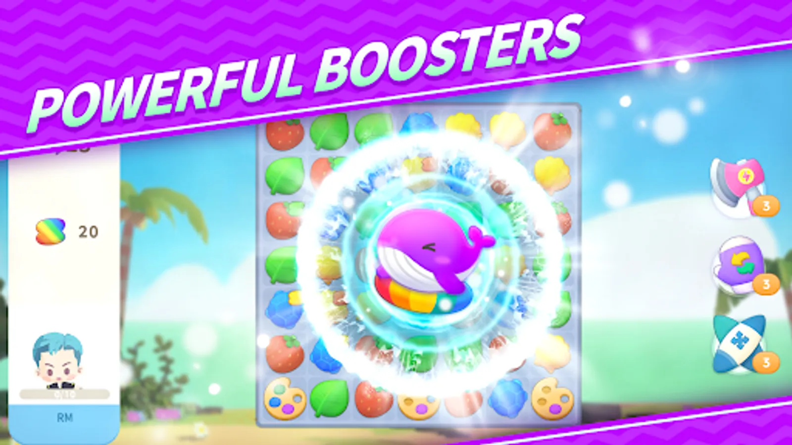 Collect and play with BTS characters in this addicting match-3 puzzle game. RM, Jin, SUGA, j-hope, Jimin, V, Jung Kook are waiting for you! , , , and more beloved songs are here!