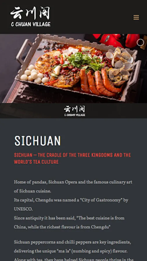 SICHUAN CUISINE IS MOST WELL-KNOWN FOR ITS TINGLING AND SPICY FLAVOR, THOUGH IT MAY SPORT SWEET AND SOUR FLAVORS TOO. IT’S CONSISTS OF SEVEN FLAVORS: SOUR, TINGLING, SPICY SWEET, BITTER, AROMATIC AND SALTY. HENCE, THERE ARE VARIOUS COMBINATIONS, GIVING RISE TO INCREDIBLY DIVERSE FLAVORS. OUR RESTAURANT DECORATIONS & AMBIANCE ARE DESIGNED WITH THE ICONIC ELEMENTS FROM SICHUAN, WE WANT TO PROVIDES OUR CUSTOMERS WITH A TRULY SICHUAN RESTAURANT DINING EXPERIENCE.