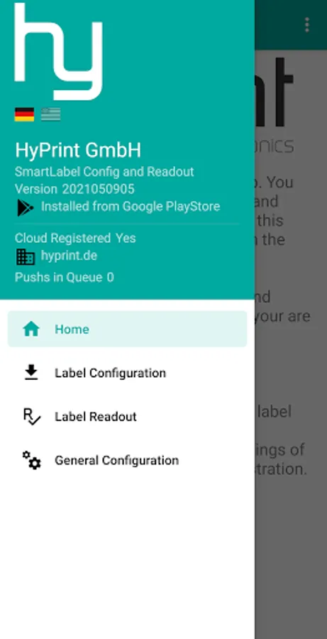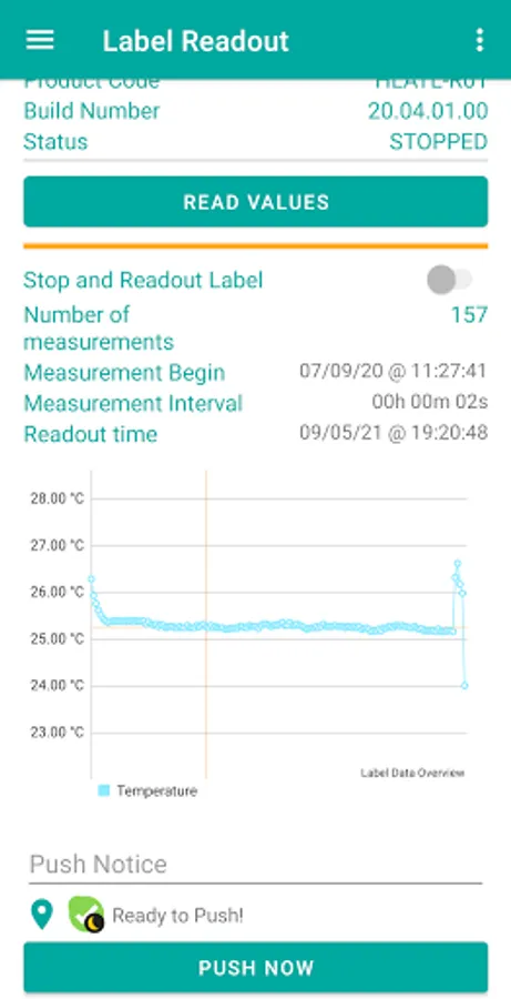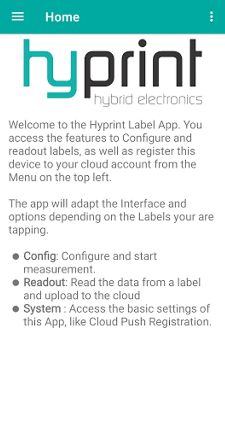 The HyPrint HY-Label App allows you to setup your SmartLabel for temperature measurements, readout datasets and upload them to your cloud space.