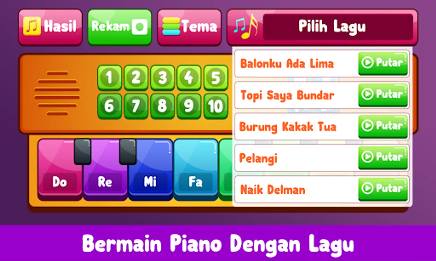 Learning piano and music for children is an application specifically designed for toddlers, early childhood, kindergarten and elementary school.