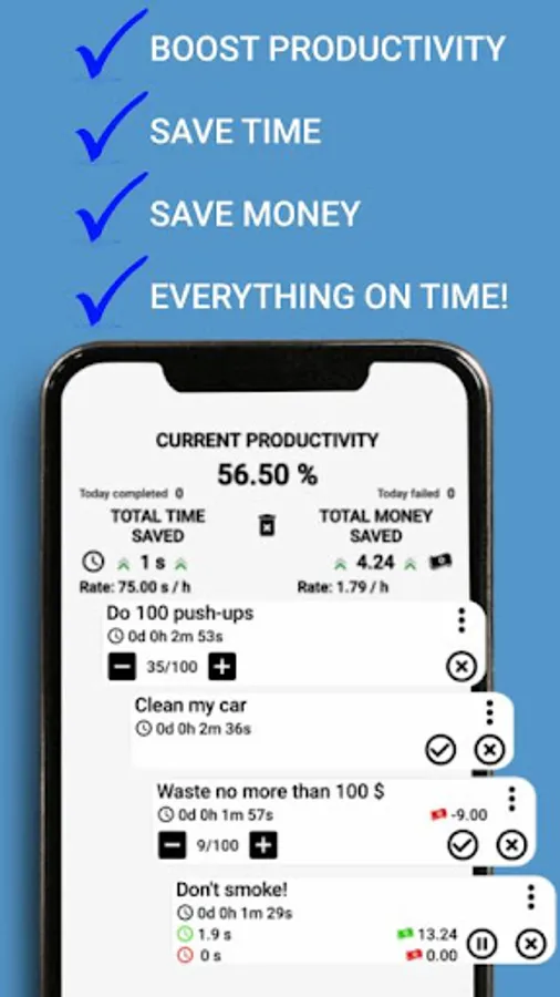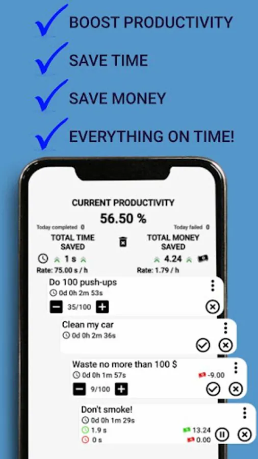 You can compare daily productivity and easily improve it. This app is specially designed for people who want to improve their productivity and track of their goals, tasks and many more. App provides productivity percentage in real time so you can track it in real time.