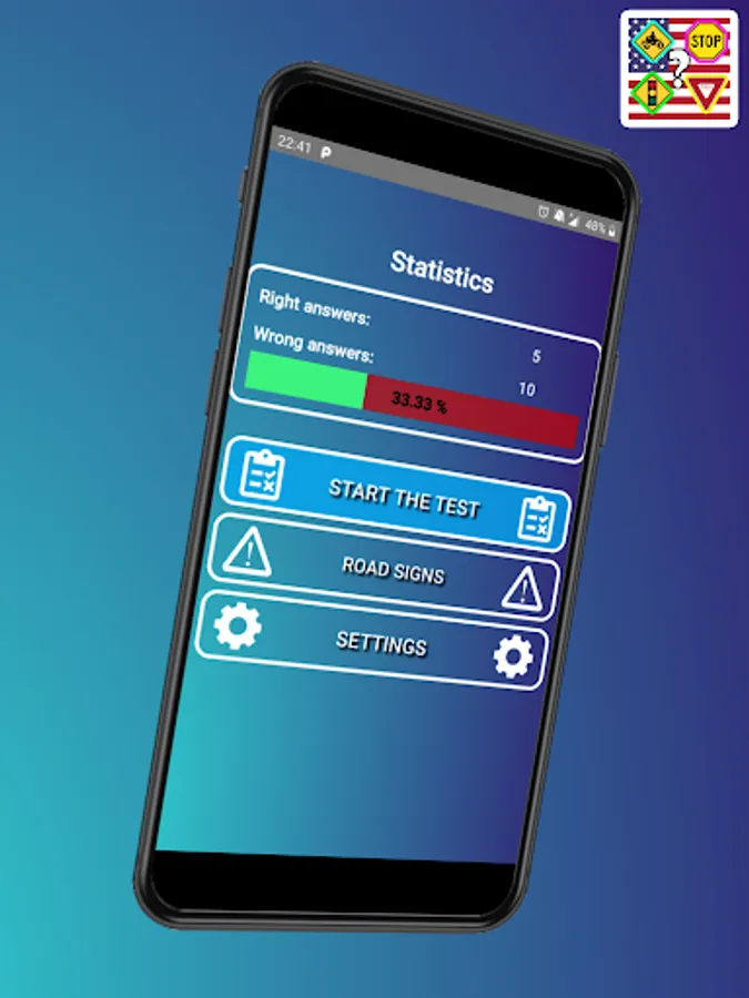 This application has 2 test forms for you to easily learn road/traffic signs meanings and visualizations. Application is easy to use, has friendly user interface and it is free.
