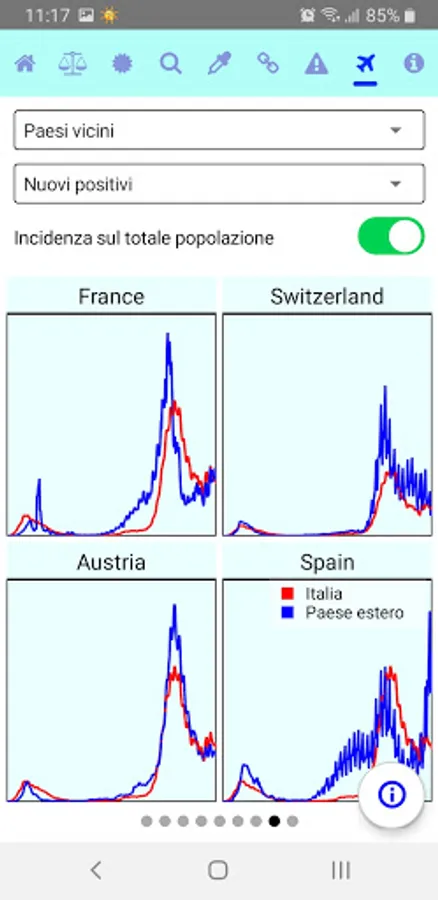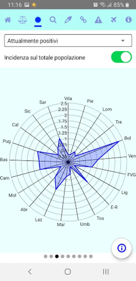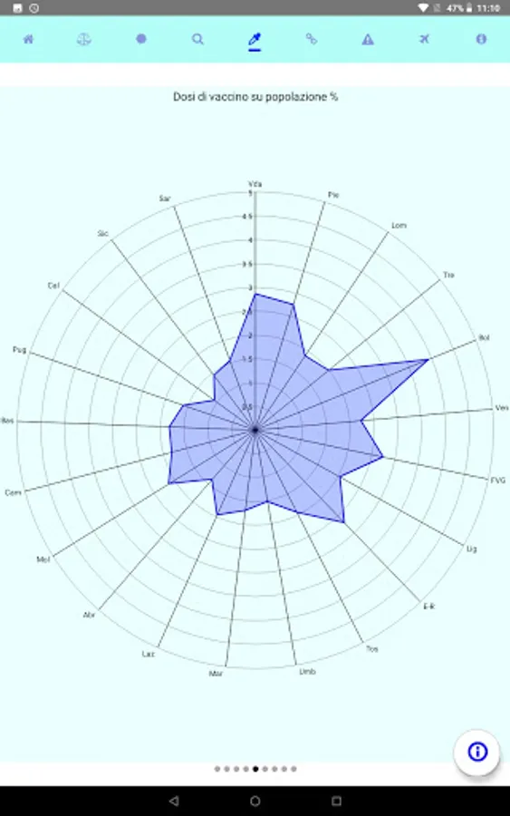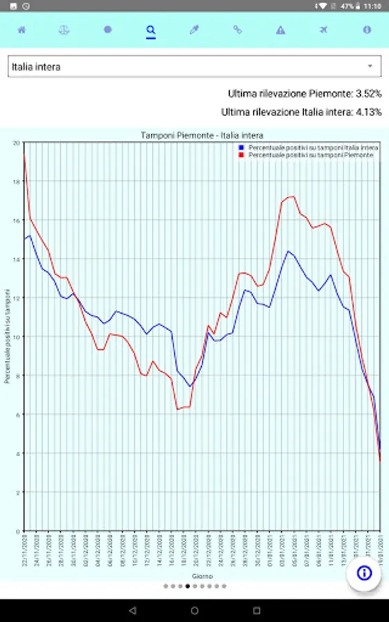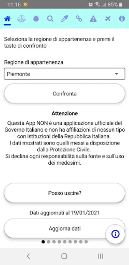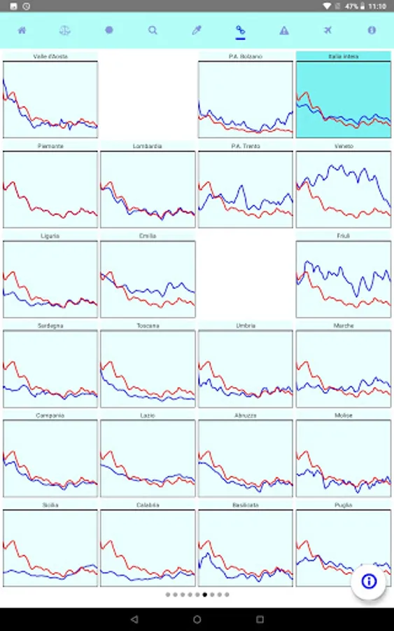 It shows the daily statistics published by the Civil Protection, with comparisons between regions and different time periods.