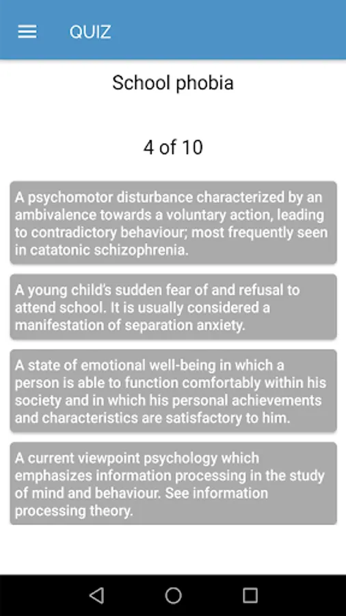 This dictionary of Psychology isn’t a simple dictionary that you find in the stationary stores & in your Psychology textbooks. This Psychology dictionary app is written and explained in such a way that anyone can learn Psychology within a short time of span. Each Psychology terms are given with the audio voice facility so you can understand the basic word behind the jargon.