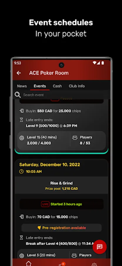 We’re here to help you find the best live poker tournaments and cash games in your area. You can also keep track of your friends, see who is playing where, and get all the information on upcoming events.