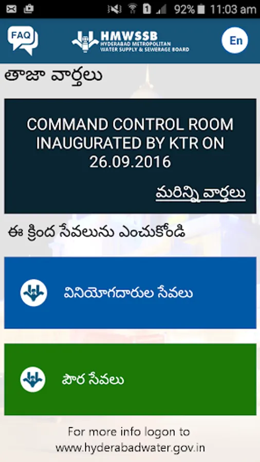 Hyderabad Metropolitan Water Supply & Sewerage Board (HMWSSB) Consumer Services App is launched so that a citizen