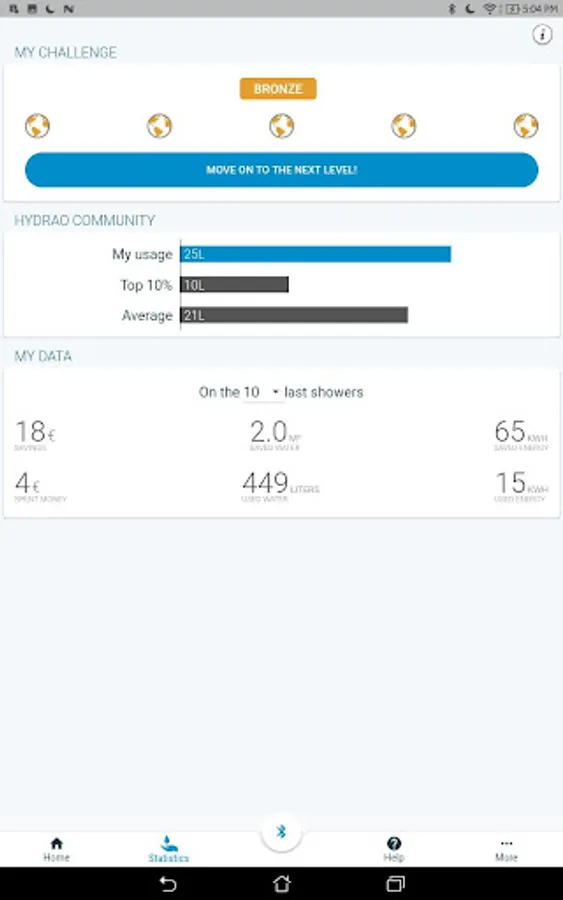 With Hydrao, saving water becomes a game. Fun and intuitive, this app allows you to track and compare your performance and progress. You may setup water thresholds and colors, monitor water consumption, evaluate how much savings (water and heating) you have made and manage several shower heads from your account.