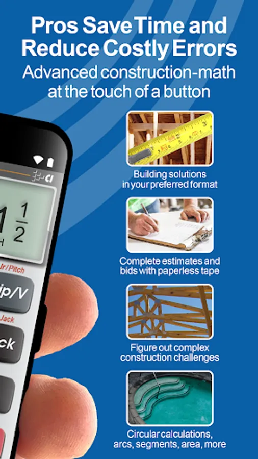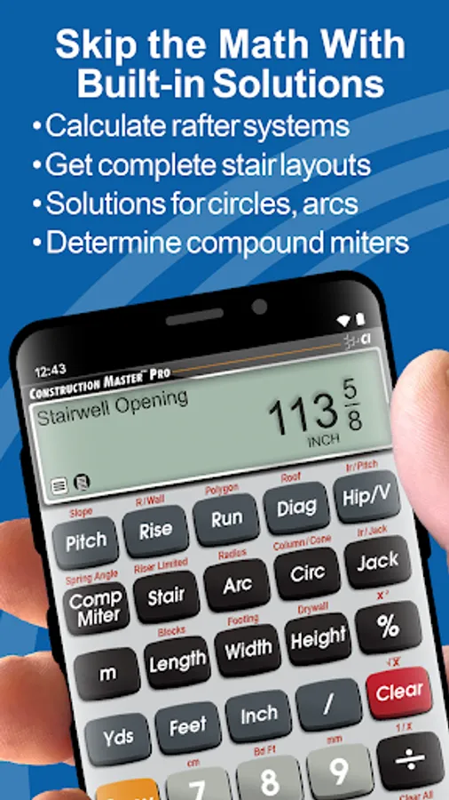 Save time and reduce costly errors on all your jobs with the award-winning and industry-leading Construction Master Pro feet-inch-fraction calculator!