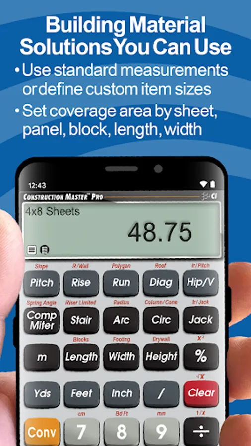 Built with the same core engine that powers the industry-standard advanced construction-math handheld calculators from Calculated Industries.