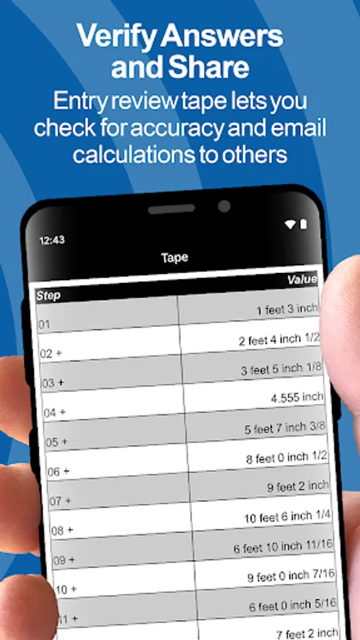 • Work in and convert between all building dimensional formats: feet-inch-fractions, inch fraction, yards, decimal feet (10ths, 100ths), decimal inches and metric